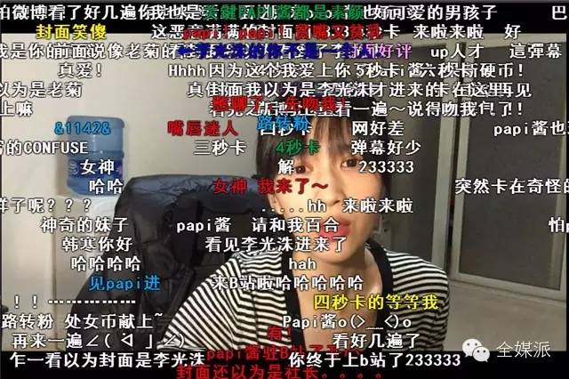 B站:在二次元聚集地B站,papi酱粉丝8万,但打开新近视频,满屏弹幕足见其热度。
