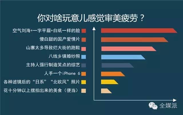 此前,《好奇心日报》曾做过这样一个调查:“你对啥玩意儿感觉审美疲劳”,“滤镜”、“网红脸”“傻白甜”成为重度吐槽词汇。鸡汤、反鸡汤、看起来很美很文艺的东西,似乎都无法真正吊起人们的胃口。