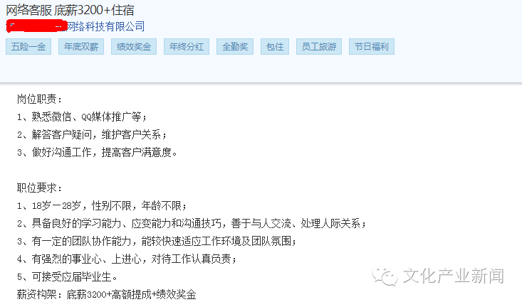 在招聘岗位上,会把营销业务员岗位美化成“网络客服”、“网络销售代表”、“微信推广”等职务,在岗位表述上也不外乎“熟练使用微信、QQ等社交软件,通过社交软件维护客户良好关系”等看起来“高大上”的内容。
