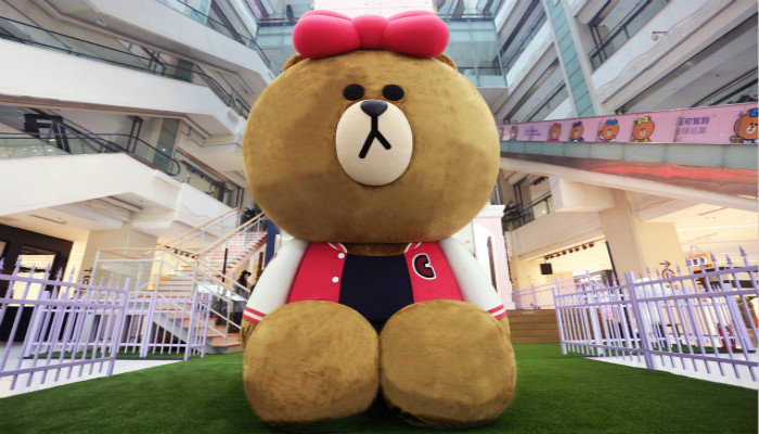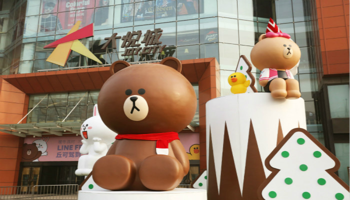 满足爱拍照的粉丝们,商场二层和外广场设立了“拍照街区”和“冬日乐园”展区,布朗熊、丘可、可妮兔、詹姆士、馒头人等七大形象以季节装束出现在这些区域。