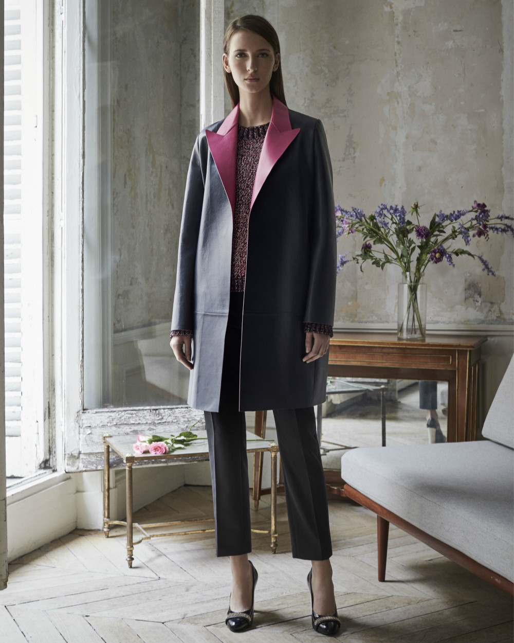 2017早春系列是Bouchra Jarrar在LANVIN的首秀,新设计在硬朗风格和柔美气质间转换,在结构感夹克、 军装风西装外套、线条柔和的卡其色纯棉罗缎羽绒服和象牙色山羊皮衬里短夹克中得以展现。Bouchra Jarrar同时使用兰花、丁香、双色堇花卉图案, 在主色调中加入明亮色彩的点缀作为风格的平衡,一同推出的还有适用于不同场合的LANVIN 2017早春系列配饰