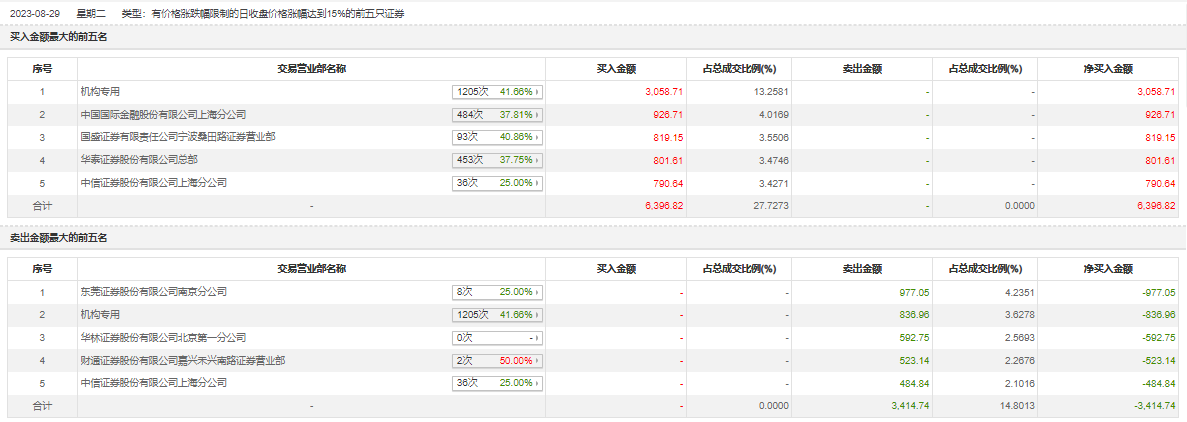 8月29日,盛邦安全今日涨停,龙虎榜数据显示,上榜营业部席位全天成交9811.55万元,占当日总成交金额比例为42.53%。其中,买入金额为6396.81万元,卖出金额为3414.74万元,合计净买入2982.07万元。