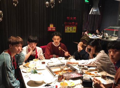 坐在一群人中颜值还算好,希望不是打光的效果。好奇怪右下角这位是不是张亮?