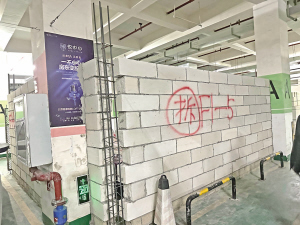 8月31日上午,记者在同德昆明广场小区地下停车场看到,多个停车位上放置了许多砖头、水泥和砂石。业主赵先生介绍,施工是悄无声息开始的,之前业主们没有发觉,等到发现的时候,部分车位上已经建了很多建筑。