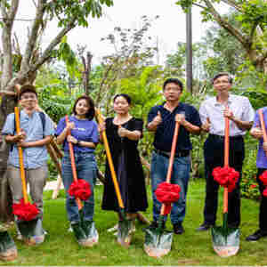 随后,所有嘉宾移步至社区植物园内,举行望天树移植仪式。中国科学院西双版纳热带植物园、景洪市第六小学、曼贺纳村、云南万科等多方领导共同参与了这一仪式,象征着对珍稀植物的保护与承诺,标志着着生物多样性示范社区的崭新起点。