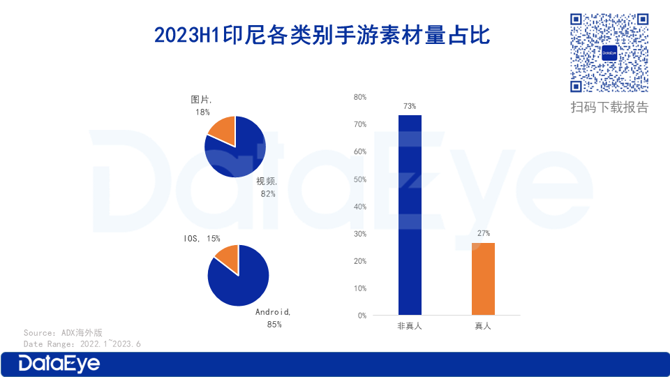 真人素材占比:非真人/真人≈2.7:1,真人素材在印尼市场占比较小。
