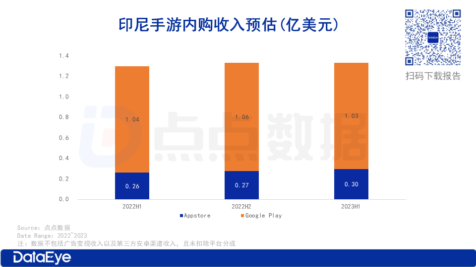 2023上半年,印尼手游市场内购总收入达1.33亿美元,同比提升2%;总下载量达16.5亿次,同比下滑8%。