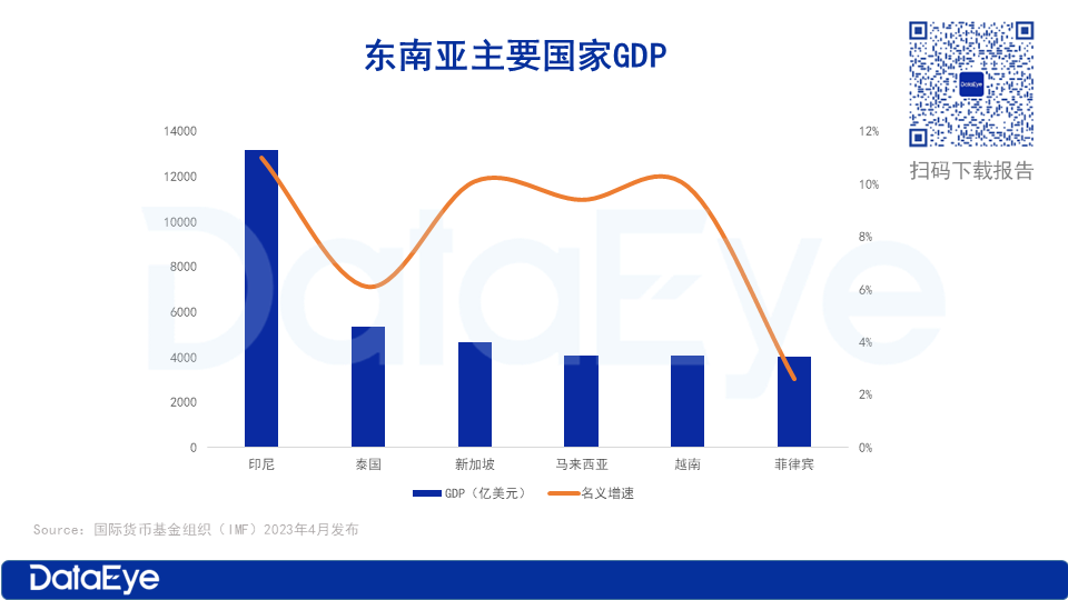 印尼2022年GDP东南亚第一,名义增速11%。东南亚主要国家中,印尼GDP总量大幅领先,主要由于印尼人口体量在东南亚位列第一(人口数量全球第四)。印尼2022年GDP达1.31万亿美元,位列全球第16。