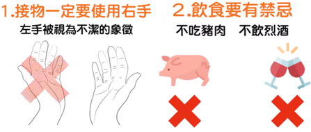 2、宗教元素:避免使用猪、狗、酒等元素;传递或接受物品,要用右手,切忌用左手;忌讳老鼠和乌龟。