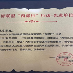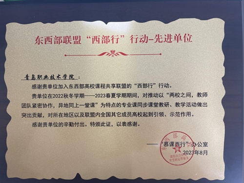 近日,第二届“慕课西行”推进会暨AI赋能新形态教学改革研讨会在新疆维吾尔自治区阿克苏市新疆理工学院举办。会议对2022秋冬学期-2023春夏学期“东西部慕课西行2.0行动”先进单位和个人进行了表彰,青岛职业技术学院获评东西部高校课程共享联盟“西部行”行动先进单位。全国共6所东部开课学校和4所西部合作院校获此荣誉。