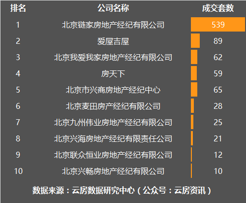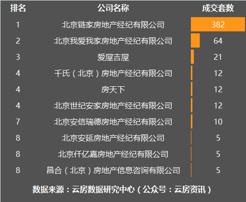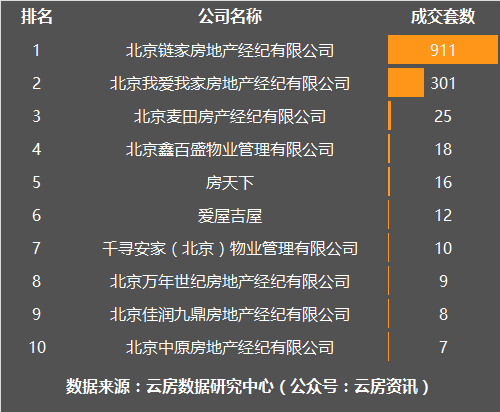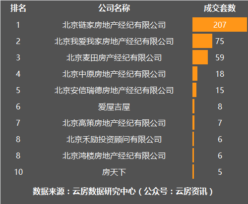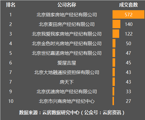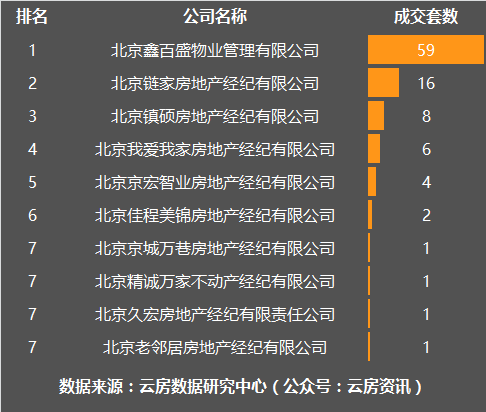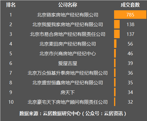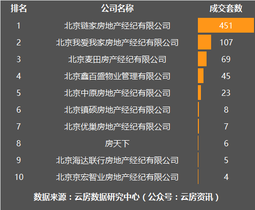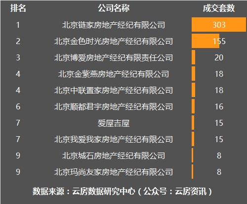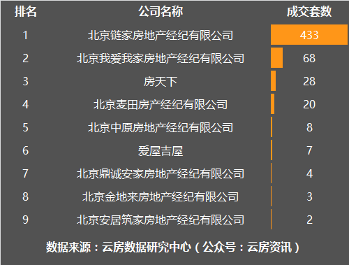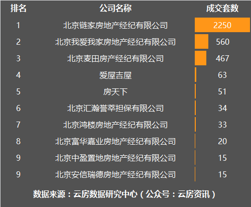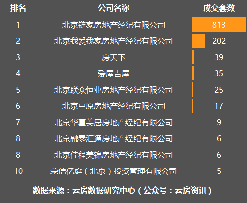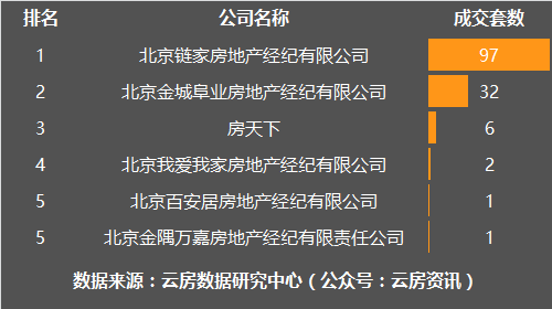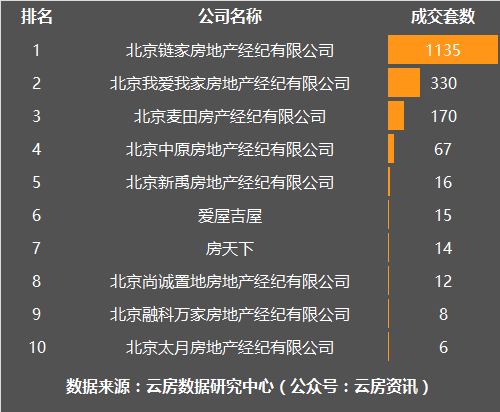11月朝阳区房产中介成交套数榜