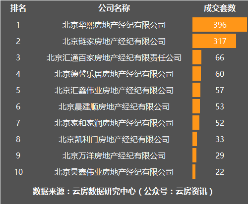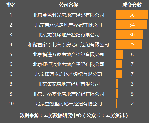 11月房山区房产中介成交套数榜
