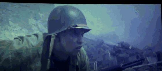 日本人随时可能再次来袭的夜晚,戴斯蒙德和战友蜷缩在坑洞里,稍微听到一点动静就紧张的不行,偷偷探出头却看到老鼠在啃咬战友的尸体。