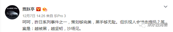 对此有媒体解读称,乐视网盘中一度跌破股权质押平仓线,贾跃亭手中的乐视股权遭遇平仓危机。针对这一传闻,乐视网官方回应称,平仓价数据与实际情况不符,纯属臆测。乐视集团CEO贾跃亭更亲自上阵,在微博手撕黑子。