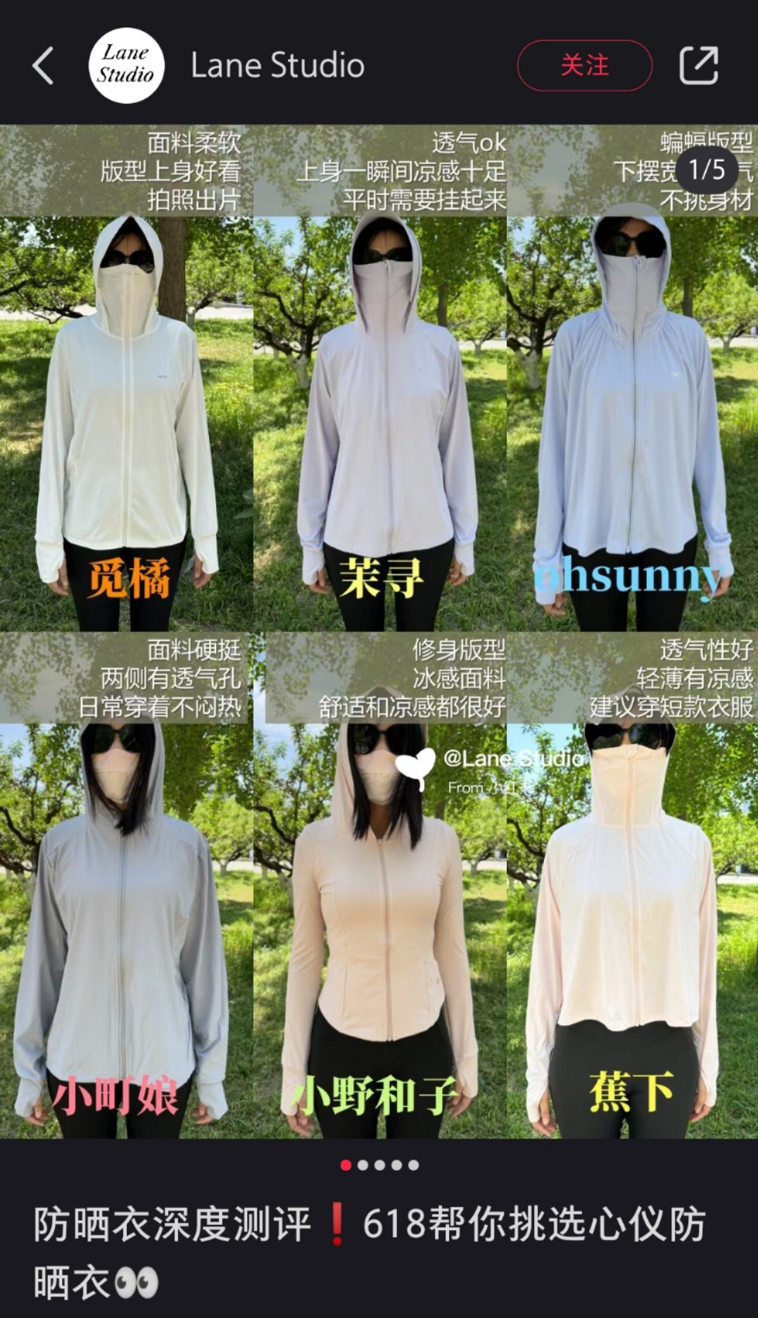 上海大学生徐静告诉记者,由于当初在小红书上看到一个穿搭博主的推广,她买了一件防晒衣。之后宿舍里的其他三个同学也都购入了防晒衣。