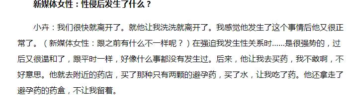 因为没有像民生事件里的姑娘一样在微信性骚扰阶段就进行反抗手段,南方日报的实习生妹子男上司通过身份证被扣押不还的手法将妹子骗到酒店房间,最后实施了 强奸 。