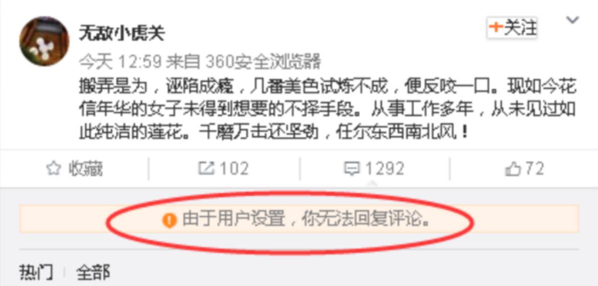 关小虎在微信截图确凿的情况下都能在微博上的回应妹子是“诬陷”她。