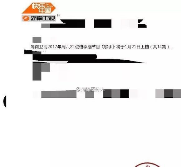 网上也有人发布盖有湖南电视台印章的文件截图,从截图来看节目名已经确定为《歌手》。