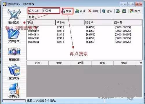 金山游侠允许你在玩游戏的时候后台运行,使用方法很简单。比方说你在玩《仙剑奇侠传·问情版》,南宫煌的血量是 101,这时候你把游侠调出来,填入 101,等到血量变为 50 的时候再填,这样你就把这个数值锁定了,把它改为 100000 就基本上不会死了。