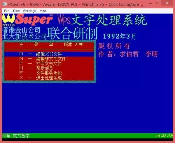 1992 年版本的金山 WPS,由著名教主求伯君开发: