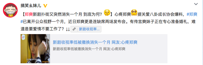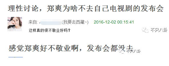 除此之外,在该剧的宣传期内,郑爽连连缺席两场发布会,她的“任性”给网友的感觉却是有些“不敬业”。