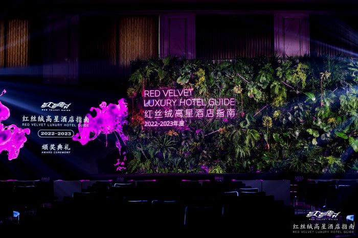 9月1日,第二届红丝绒高星酒店指南颁奖典礼在上海苏宁宝丽嘉酒店举行,现场有来自全国高星酒店的总经理代表、酒店集团代表、行业专家等260余名嘉宾参与,同时进行了6个多小时的现场直播,红丝绒指南并首次上线了官网。本届红丝绒指南主题色为 “非凡洋红”,打造了三套主视觉:红毯、典礼、晚宴,且全部运用可持续发展设计理念,主舞台更运用可让现场来宾带回家的热带植物做大型绿植墙。本次红丝绒指南榜单评选从全国 800 多家高端酒店中经过评委们在多个维度的打分、统计、排名后,评出获奖名单。