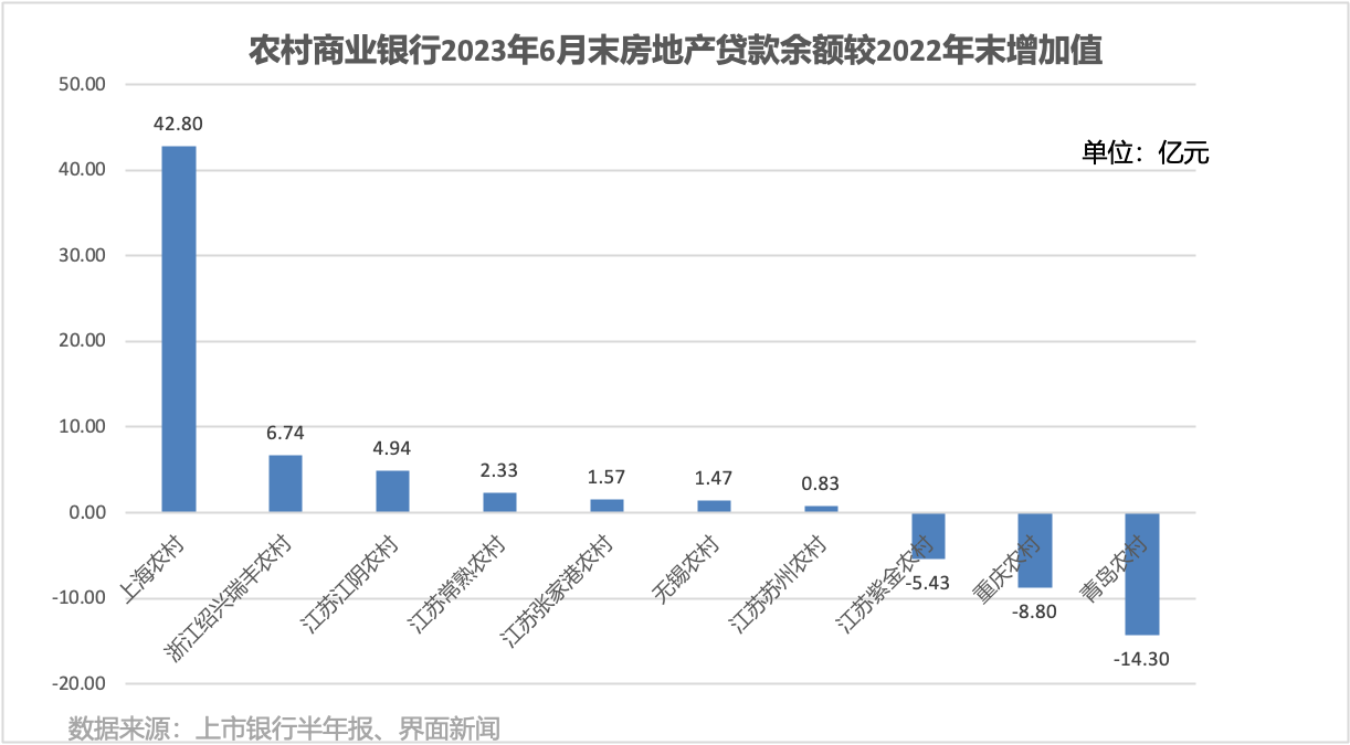 10家农商行中,有7家对公房地产贷款余额在上半年出现增长。个别农商行由于基数较低,增速达到20%以上,比如,江阴农村商业银行投向房地产企业的贷款余额从上年末的3.32亿元增加至8.26亿元,增幅接近150%。
