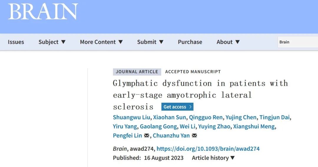 肌萎缩侧索硬化症(ALS)是一种致命的神经退行性疾病,由来自大脑和脊髓的运动神经元的缺失引起。近年来的动物实验结果显示,脑胶质淋巴系统损害可能是ALS重要的发病机制之一。然而迄今为止,尚无研究验证ALS患者中是否存在脑胶质淋巴系统损害。焉传祝教授团队在齐鲁医院中心院区和青岛院区建立了完善的ALS临床研究队列,是国内外较大的拥有完整神经影像和体液生物样本的单中心ALS研究队列。在此基础上,课题组通过先进的磁共振成像技术,首次发现在疾病的早期阶段,ALS患者即可出现显著的脑胶质淋巴系统功能障碍,且睡眠障碍,尤其是睡眠效率下降和周期性腿动指数增高与ALS患者脑胶质淋巴系统损害关系密切。此外,代表脑胶质淋巴系统损害的ALPS指数可以作为ALS有效的早期诊断标志物,同时本研究揭示了脑胶质淋巴系统可作为延缓ALS疾病进展的干预靶点。本研究的结果进一步拓展了对脑胶质淋巴系统与神经系统变性疾病之间关系的理解,有助于围绕相关靶点开发与脑胶质淋巴损害相关的神经系统变性疾病的新疗法。本研究结果以研究论著的形式于2023年8月发表在Brain(PMID: 37584389)上,山东大学护理与康复学院及齐鲁医院神经内科兼聘副研究员刘双武教授和齐鲁医院神经内科在站博士后孙晓晗医师为本论文共同第一作者,齐鲁医院神经内科焉传祝教授和林鹏飞副主任医师为本文的共同通讯作者,山东大学为第一作者和通讯作者单位。
