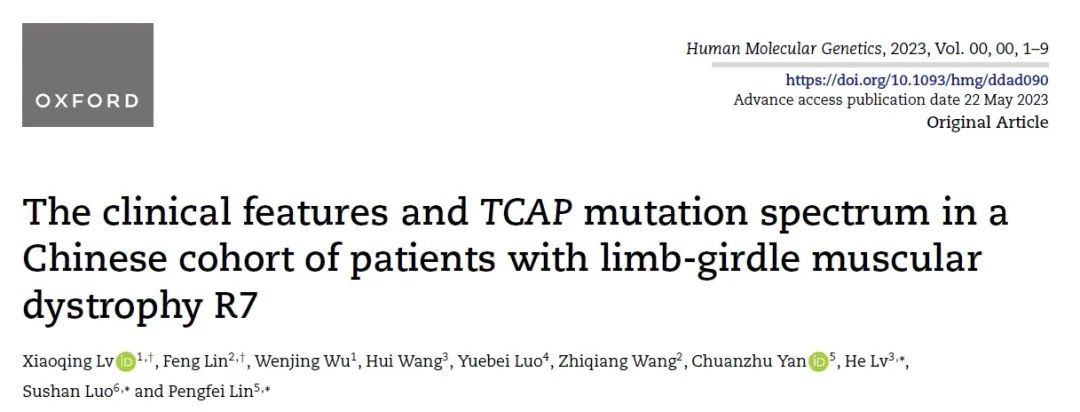 肢带型肌营养不良R7型(LGMDR7)也称为肢带型肌营养不良2G型,是一种罕见的遗传性肌肉疾病。山东大学齐鲁医院焉传祝教授团队牵头联合复旦大学附属华山医院、福建医科大学第一附属医院、北京大学第一医院、中南大学湘雅医院建立了迄今为止全球最大的LGMDR7多中心队列研究,总结了中国LGMDR7患者的临床、病理、影像学以及分子遗传学特点,这些发现扩大了中国LGMDR7患者的表型谱、肌肉病理特点和突变谱系,为本病的临床诊断和治疗以及病理机制研究提供重要的基础。本研究以研究论著的形式于2023年5月发表在遗传学经典期刊Human Molecular Genetics(PMID: 37216648)上。山东大学齐鲁医院神经内科在读博士生吕晓晴和福建医科大学第一附属医院林锋主治医师为论文共同第一作者,山东大学齐鲁医院神经内科林鹏飞副主任医师、复旦大学附属华山医院神经内科罗苏珊主治医师、北京大学第一医院神经内科吕鹤主任医师为本论文共同通讯作者,山东大学齐鲁医院为本论文第一单位。