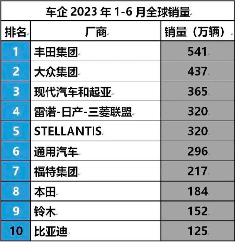 今年上半年,中国自主品牌在新能源的推动下继续高增长态势,共有4家自主车企挤进国内汽车销量榜前十。其中,比亚迪以115.5万辆的销量位居榜首,几乎相当于南北大众的销量总和,并且新车销量增速仍高达94%,远高于大市整体44%的销量增速。此外,凭借在国内高达33.5%的市场份额,比亚迪再度挺进全球车企销量榜前十,并成为中国市值最高、全球市值第三的车企。