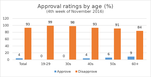 分析认为,考虑到朴槿惠在民间的支持率已经如此低迷,她不会像卢武铉那样保住总统职位。