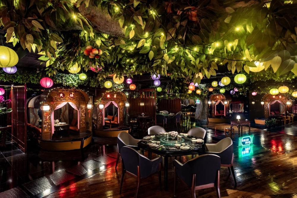 在瀑布餐厅用餐,一抬头就有18米双瀑飞流直下,两广地区家喻户晓的“刘元帅”纸塑金身镇守餐厅中央。如果遇到下雨天,雨水混着瀑布落下的水花溅落玻璃屋顶,更生意境。入夜微醺时刻,锦鲤酒吧里调酒师手工调制多款精选特饮,菲律宾乐队演奏的优雅蓝调在后花园中温柔入耳。