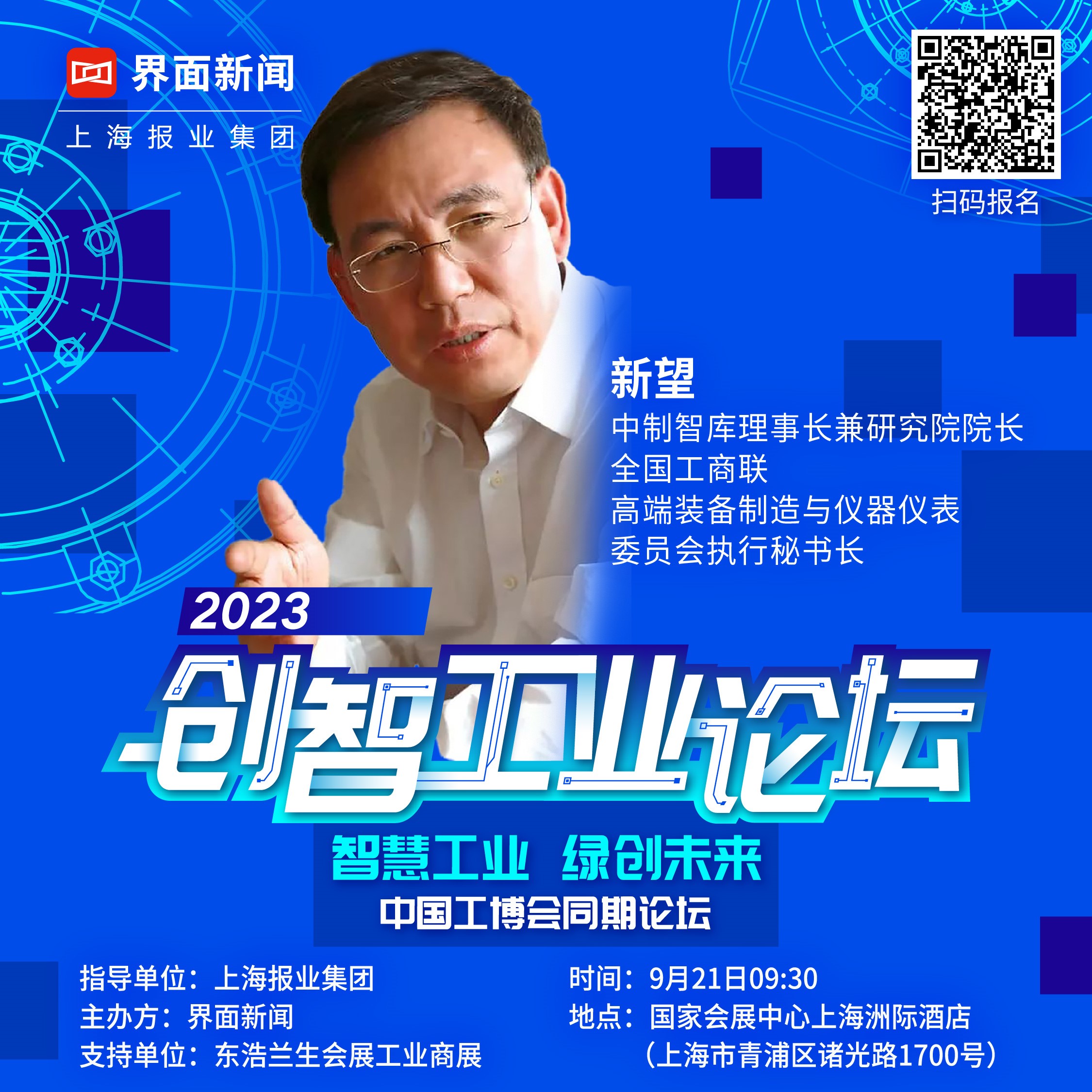 由上海报业集团 | 界面新闻主办,东浩兰生会展工业商展作为支持单位的2023第六届【创智工业论坛】确认将于2023年9月21日国家会展中心上海洲际酒店(上海市青浦区诸光路1700号)举办。作为中国工博会的同期论坛,主办方将携手知名专家学者、行业大咖、资深媒体人展开多场主旨演讲、高峰对话,洞察工业领域发展趋势,畅谈业态创新发展话题,共同探讨双碳时代带来的绿色、智慧、可持续城市蓝图,描绘更智能、更可持续、更具韧性的制造业新图景。据悉,中制智库理事长兼研究院院长、全国工商联高端装备制造与仪器仪表委员会执行秘书长新望确认出席本次论坛。