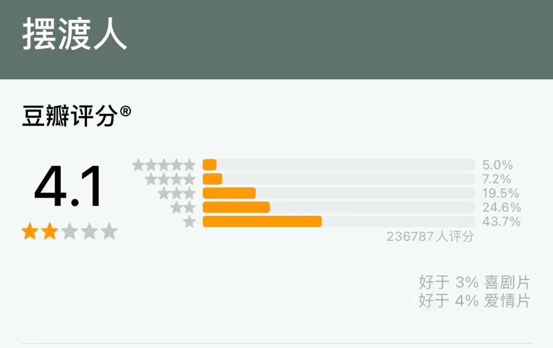 2016年,改编自爆红网络小说《从你的全世界路过》的电影《摆渡人》上映,王家卫和梁朝伟的组合第一次在内地遭遇口碑滑铁卢。影片台词充满了“鸡汤式爱情文学”的调调,台词表演悬浮不接地气,使该作品上映即遇冷,豆瓣评分仅4.1分,仅收获4.82亿票房。