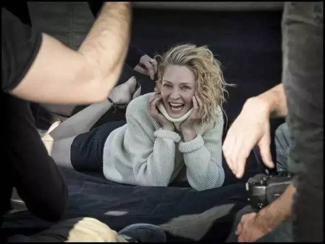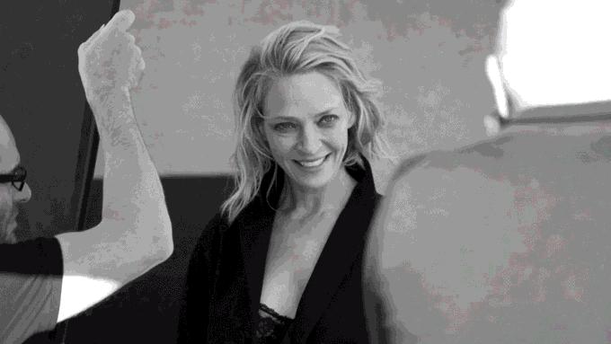 不知道Peter做了什么,乌玛·瑟曼一直大笑不止,她说,Peter让她感觉放松,做自己的感觉真好,感觉他像是能看穿她的灵魂。豪放大笑的乌玛让我们又回到了她在《低俗小说》里跳兔子舞的梦幻夜晚,她就像一个礼物,带我们走入温柔良夜,没有那一幕,电影史将会多么寂寥。