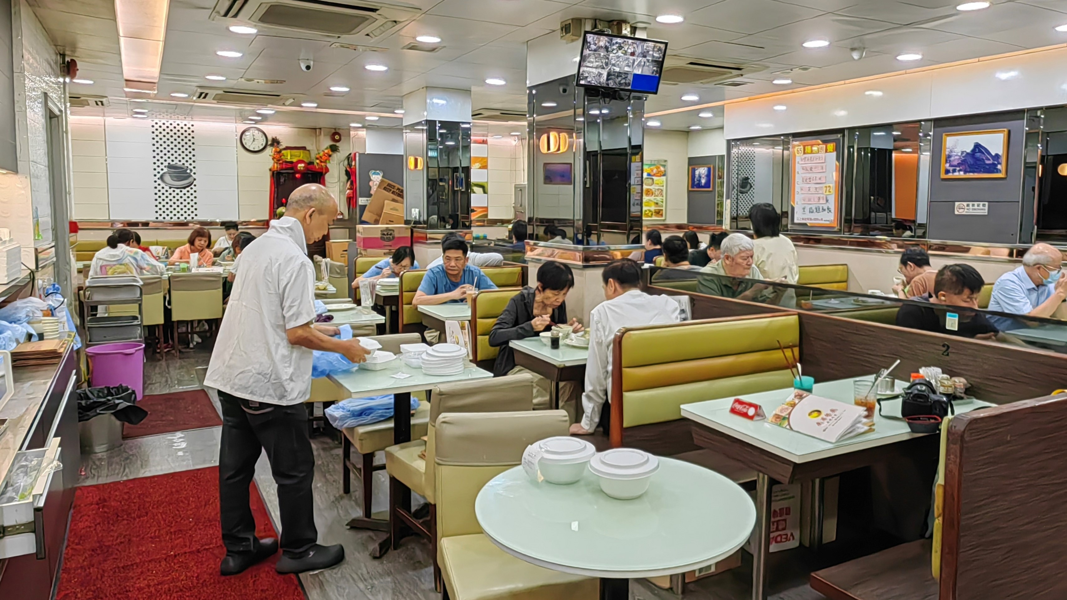 马大鹏也明显感觉到夜晚的萧条。他是南华餐厅的老板。这家餐厅是旺角一带的老字号,经营了24年之久。马大鹏提到,过了9点基本上没什么客人,原因有二:“周围的夜店都倒闭了,以前不少酒吧客会来吃宵夜。加上疫情影响了居民消费习惯,大家宁愿早点吃饭回家。”