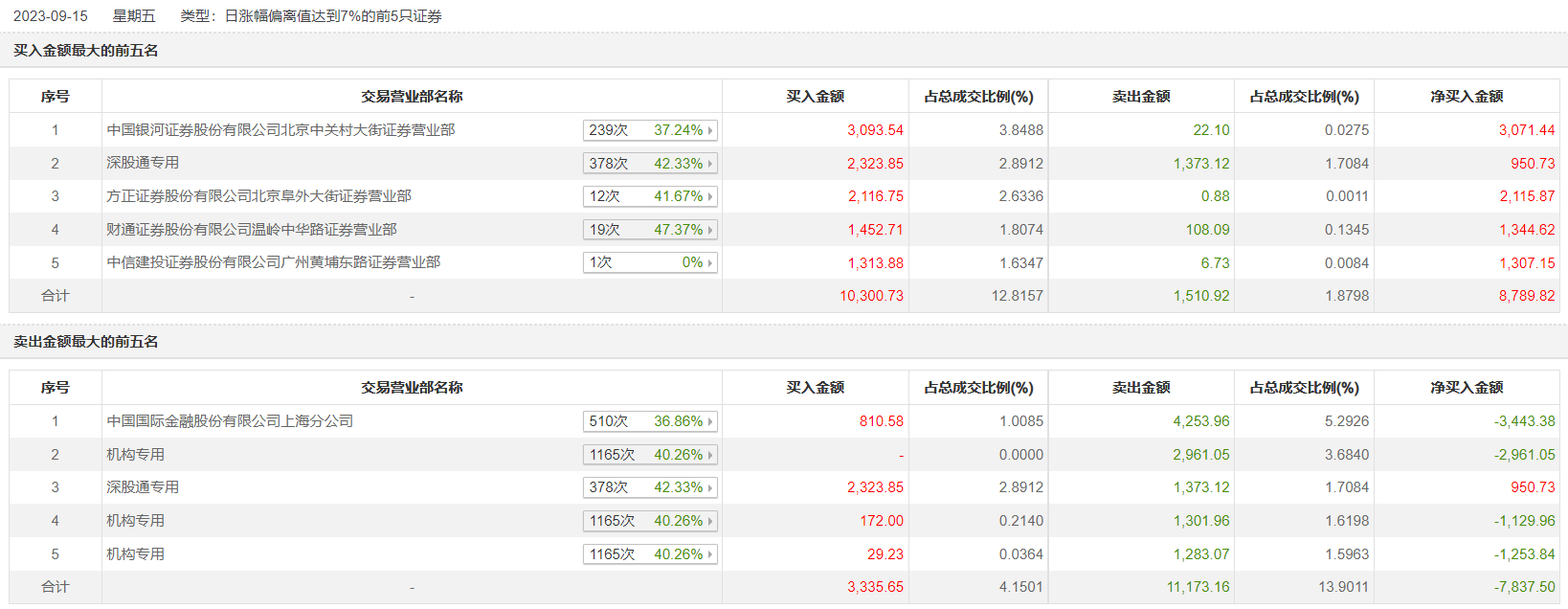 具体来看,机构买入201.22万元,卖出5546.08万元,合计净卖出5344.85万元。此外,中国银河证券北京中关村大街证券营业部、深股通专用分别买入3093.54万元、2323.85万元;中国国际金融上海分公司、深股通专用分别卖出4253.96万元、1373.12万元。