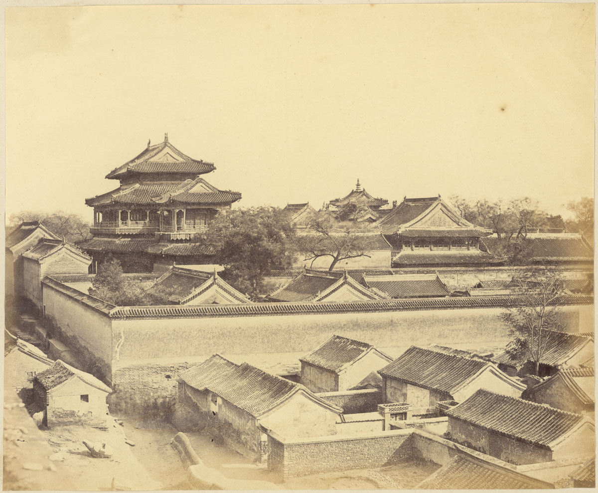 1860年中英签订《北京条约》时,英国随军摄影师费利斯·比托把摄影机架在礼部大门前,打算记录下历史时刻。时任礼部主事刘毓楠回忆此事,在日记中写到,“至礼部大堂檐外设一架,上有方木盒,中有镜,覆以红毡,不知何物。”