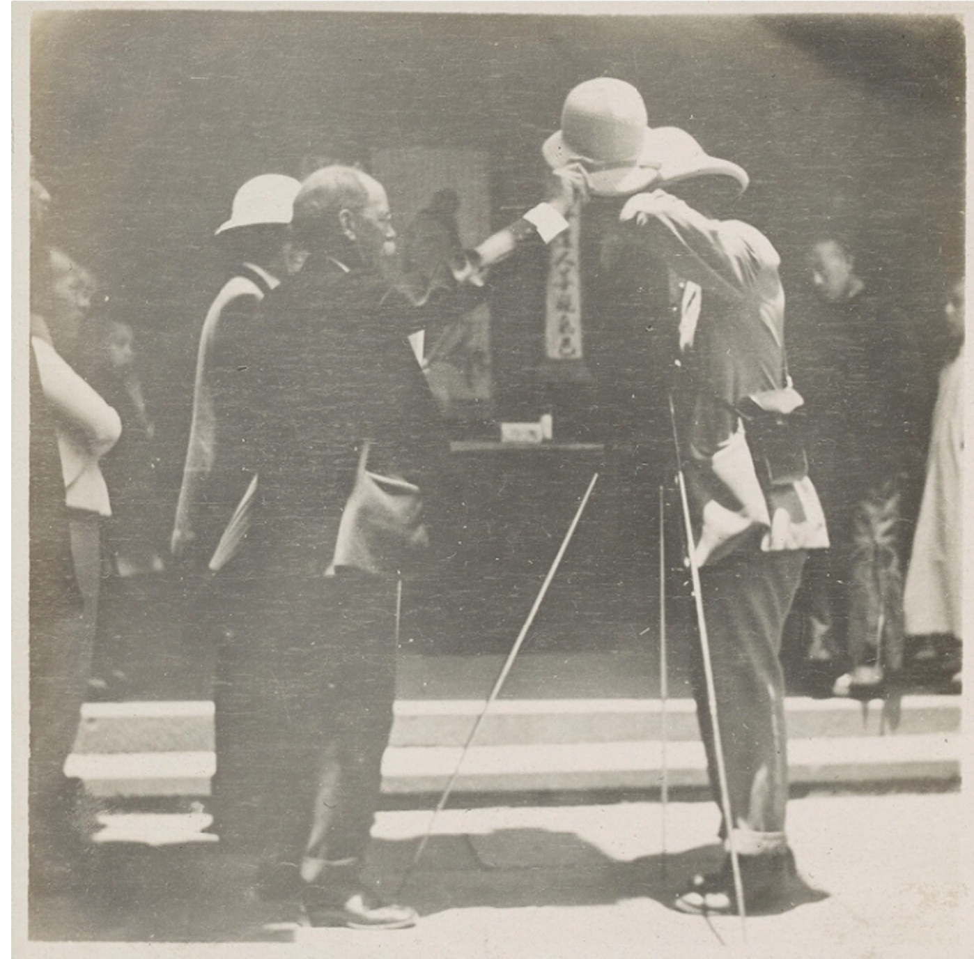 展览中呈现的另一位摄影师是美国社会学家西德尼·戴维·甘博。甘博从1917年开始,四次来到中国进行社会调查。由于器材的变化,他拍摄中国的方式与比托很不一样,他随身携带相机拍摄中国社会的方方面面。朋友回忆甘博随时背着“笨重、难看的相机”,在沿途各种环境下冲洗底片;甘博也在一篇日记中提到,为了冲洗照片,他的水壶装了十七次水。