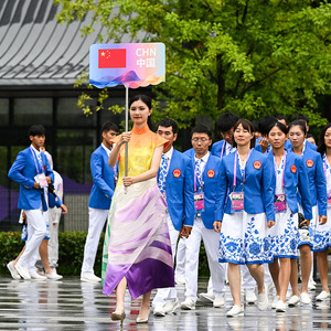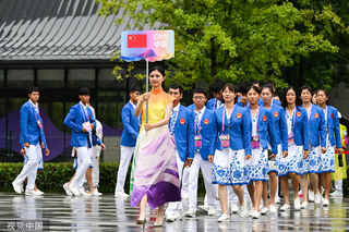 先期抵达的中国赛艇队、羽毛球队、田径队等作为中国体育代表团共同参加了开村仪式。