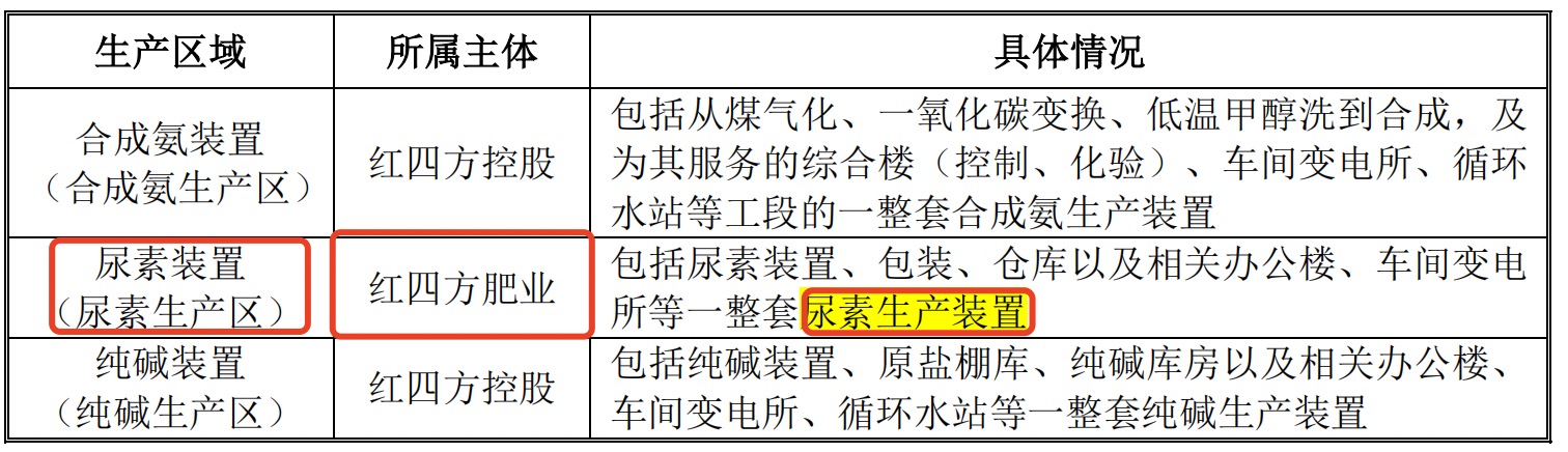 值得注意的是,红四方尿素生产装置与红四方控股合成氨生产装置系一体化设计、建设和投产,合成氨装置生产的液氨通过管道直接输送至尿素装置,蒸汽亦是合成氨系列产品配套装置,具有一体化特征。