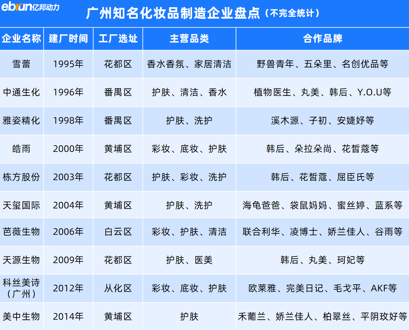 就某种程度而言,这些大型代工厂是广州美妆供应链的关键。它们不仅承担着技术研发的任务,还是与品牌方合作,向市场推出满足消费需求的产品和解决方案。除了中通生化,大型广州美妆大工厂还包括科丝美诗、芭薇股份、天玺国际、天源生物等。