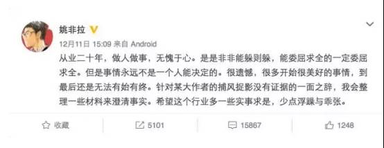 被控诉一方姚非拉也很快做出了回应,指出夏达所言没有可信性。