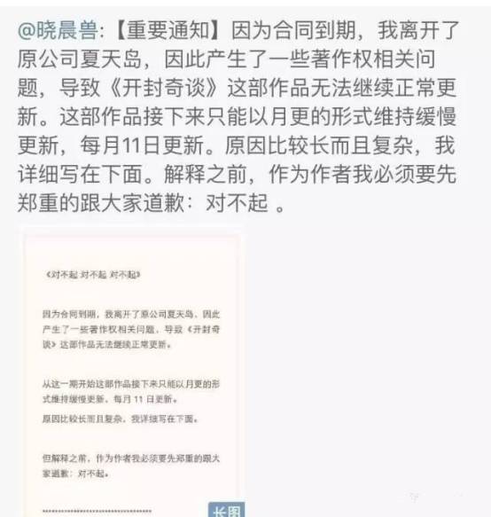 2016年4月,同样是已经离开了夏天岛的漫画家姜晓晨发表微博称自己的作品《开封奇谈》不能正常更新了,要从周更变成了月更。因为2009年姜晓晨与夏天岛签约,合约规定签约期间创作的作品,著作权都属于夏天岛。