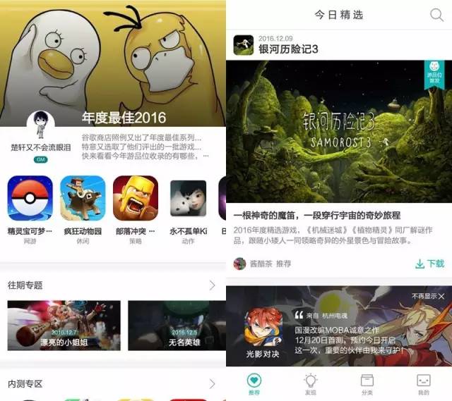 相比心动而言,网易的体量就大了很多了,所以对于这样一款产品来说,游品位的制作人曾在介绍采访的时候表示,这个产品和其他应用商店有着本质的不同,那就是不考虑游戏的市场盈利,只考虑游戏是否好玩。简单的说,就是有钱任性。不过这个产品的投入力度似乎并不算大,从目前来看,虽然也聚集了不少的玩家用户。但是这个应用只能在Android上使用的,所以相比来说就会少了很大一群用户。