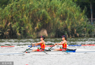 在女子赛艇轻量级双人双桨决赛中,中国组合邹佳琪/邱秀萍成功夺冠。