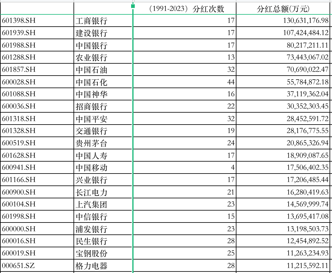 据统计,分红总额突破了千亿元的公司,共计有24家。