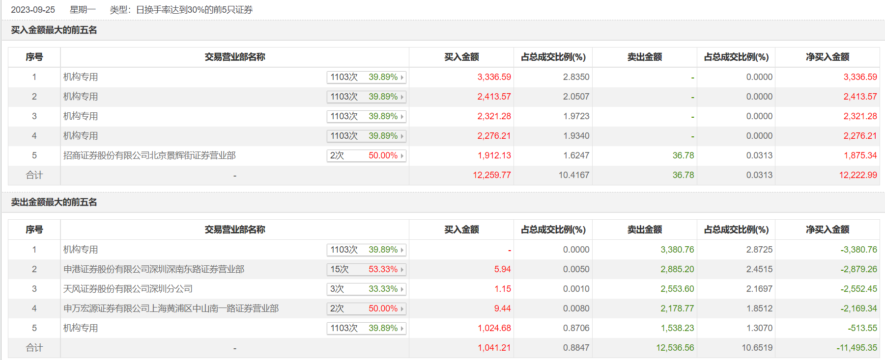 具体来看,机构买入1.14亿元,卖出4918.98万元,合计净买入6453.34万元。此外,招商证券北京景辉街证券营业部、申万宏源证券有限公司上海黄浦区中山南一路证券营业部分别买入1912.13万元、9.44万元;申港证券深圳深南东路证券营业部、天风证券深圳分公司分别卖出2885.20万元、2553.60万元。