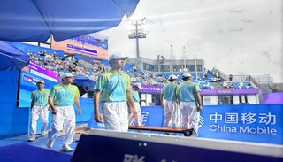 “每个位置都要平一遍,要仔细关注比赛的进程,不能放过任何需要平整的地方。一上午下来,手掌都会磨出水泡。”平沙员要在 30几度的高温下,在没有任何遮挡物的主场进行平沙。而且每天7点就要到达场馆进行准备工作,在比赛结束后也需要将沙地平整好再离场。工作强度也不小。