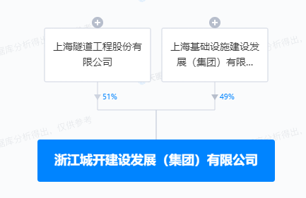 天眼查显示,近日,浙江城开建设发展(集团)有限公司成立,注册资本20亿元,经营范围包含:以自有资金从事投资活动;股权投资;自有资金投资的资产管理服务等。该公司由隧道股份间接全资持股。
